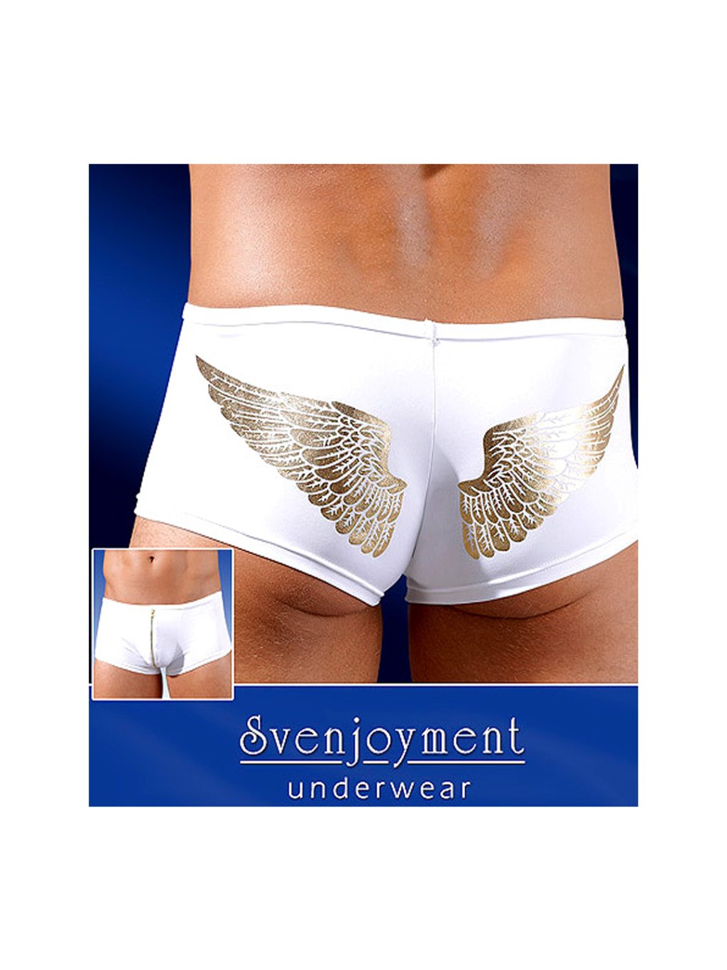 Krásné bílé boxerky se zlatým potiskem křídel na zadní straně a se zipem na straně přední. Velmi příjemný materiál.Materiál: 92% Polyester, 8% Elasthan