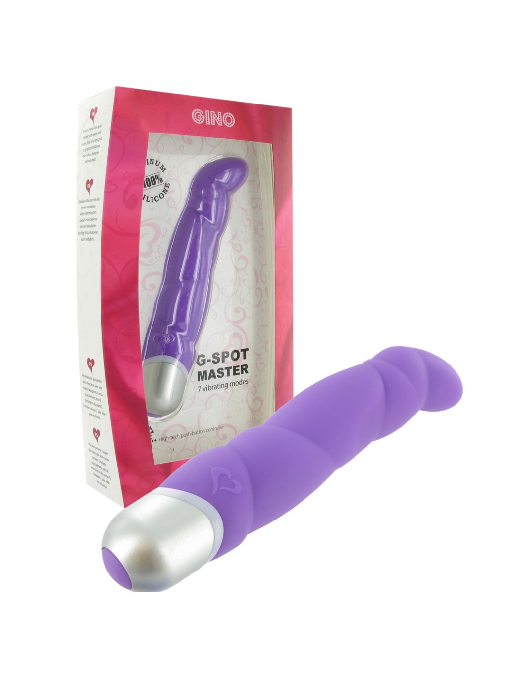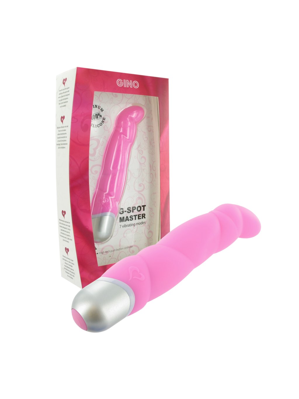 Feelz Toys - Gino je vibrátor, který má mírně zahnutou špičku pro lepší stimulaci bodu G. Má 7 úrovní vibracíRozměry a vlastnosti