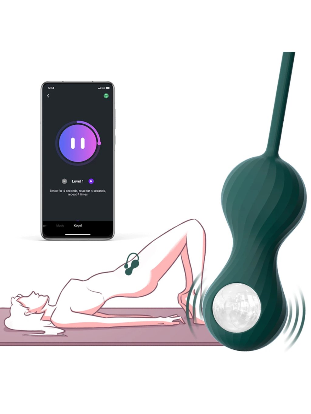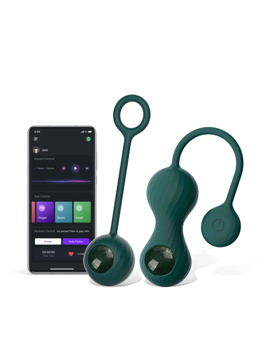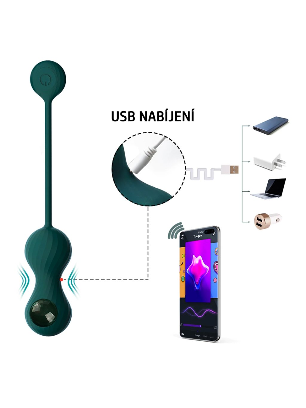 Venušiny kuličky ovládáné přes mobilní aplikaci a vaginální činka pro posílení svalů pánevního dna.Materiál a barva: