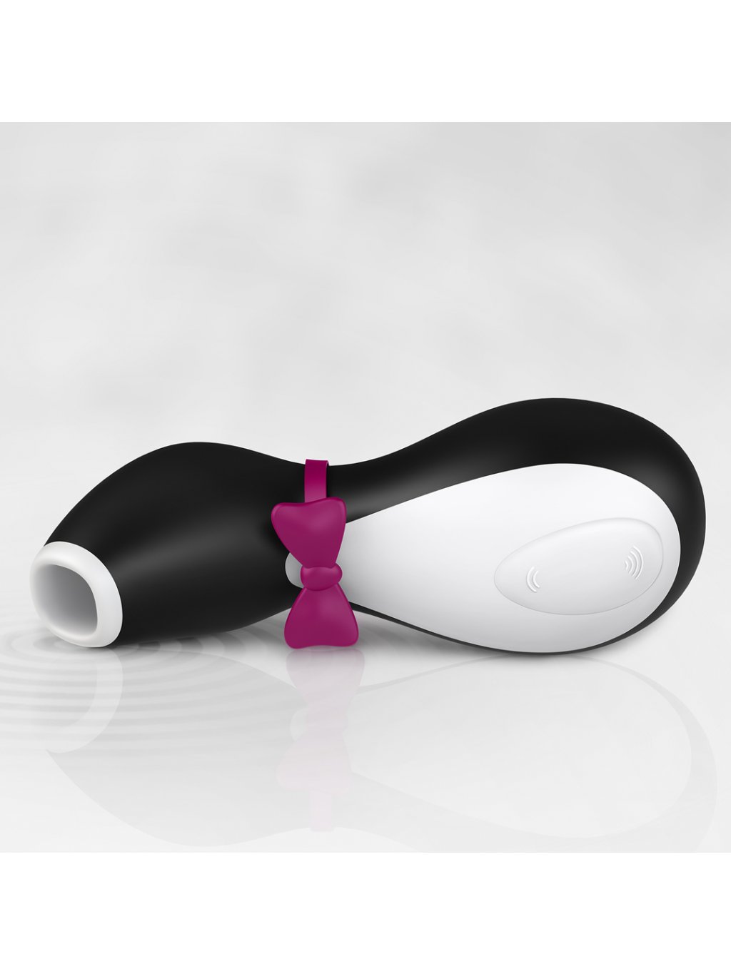 Vylepšený stimulátor klitorisu pro ženy, které si to chtějí fantasticky užít. Satisfyer Pro Penguin NG Black je novým nástupcem staršího brášky. Na první pohled vás okouzlí svým černým frakem a růžovofialovým motýlkem kolem krku.Zapněte ho spodním tlačítkem na bříšku. Najděte si to správné kouzelné místečko a jen přidržujte. Tučňák vše ostatní udělá za vás. Výhodou od předchozího modelu je plynulé snižování pulzací. A proto si můžete nerušeně hrát se sílou svého prožitku.